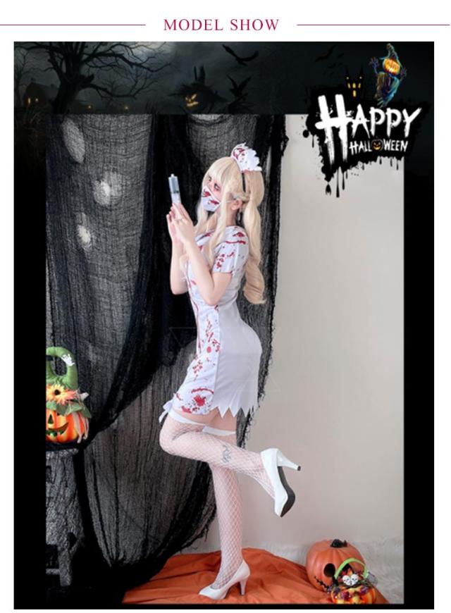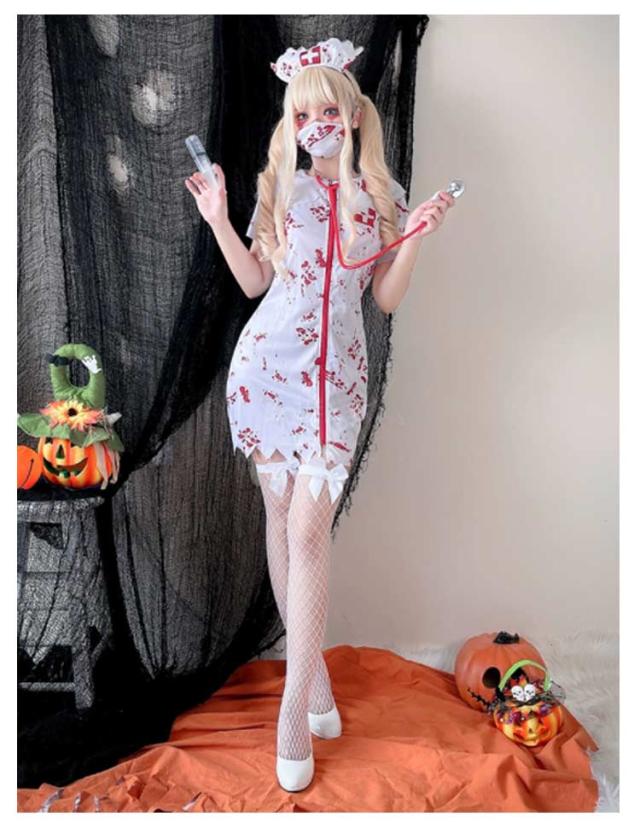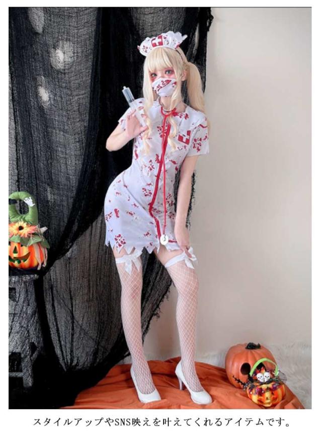 | 【ハロウィン衣装】【ナース服】【M L XL】 キュートでセクシーなワンピタイプのナースコスチューム。 セット内容:ワンピース、帽子、マスク ハロウィン、クリスマス、演劇、学園祭などの各種イベント・パーティーで大活躍♪ かわいいナースのコスプレで大盛り上がり♪ スタイルアップやSNS映えを叶えてくれるアイテムです。 | |