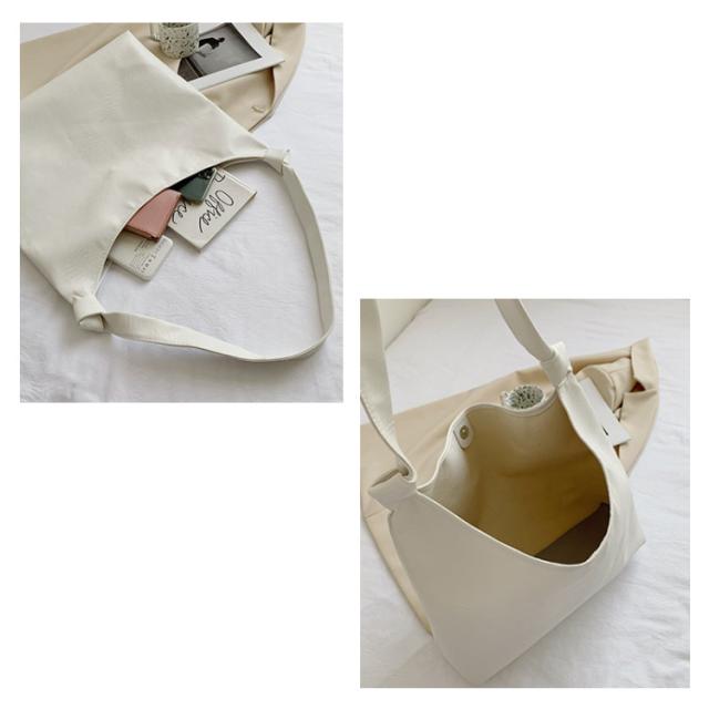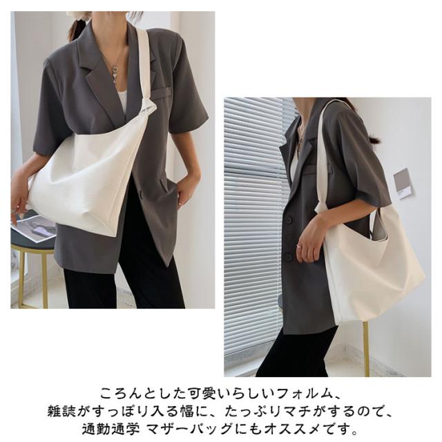 | すっきりデザインながらも収納力抜群!ころんとした可愛いらしいフォルム、雑誌がすっぽり入る幅に、たっぷりマチがするので、通勤通学 マザーバッグにもオススメです。 フェイクレザーなので見た目以上に軽い使い心地。どんな服装にも合わせやすいので、デイリートートとしてもつかえます。 幅広いショルダー部分は柔らかく、しっかりとした作りなので重いものを入れても手と肩が痛くなりにくい。 アジャスター付きなので、お好みに合わせてショルダーストラップの長さを調節できます。 | |