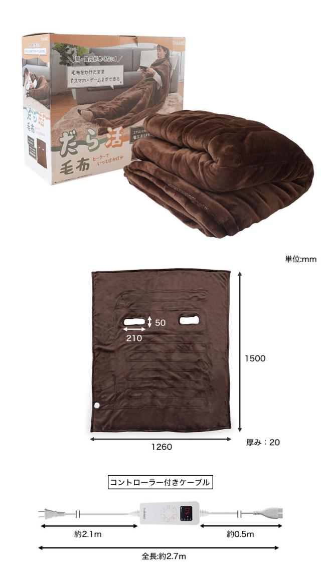 電気毛布 サンコー 着る毛布 こたつ 省エネ 暖房 冷え性 節電 洗える 掛け毛布 THANKO ヒーターでいつもぽかぽか だらかつ毛布 UDDS23SBW【送料無料】