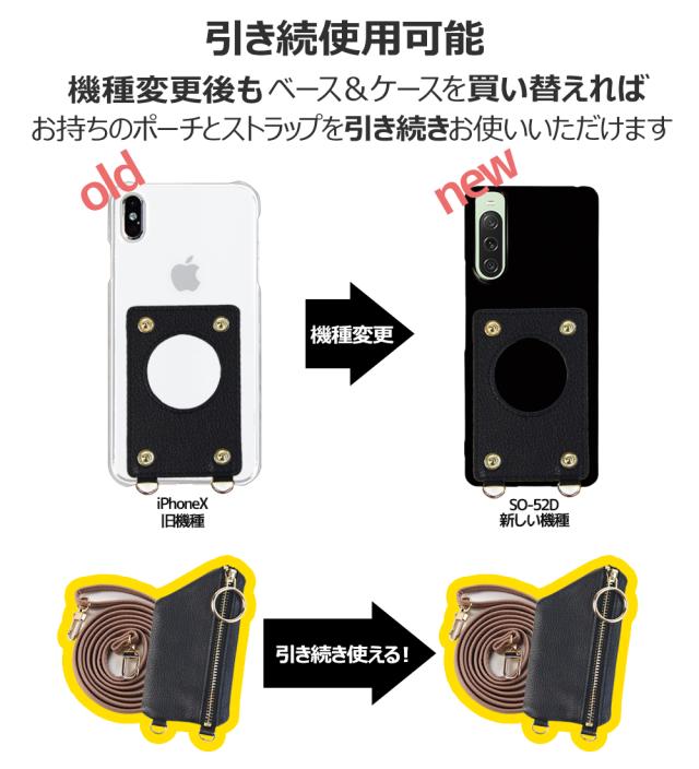 ウォレットポーチ用 ベース 全機種対応 ウォレットケース デザイン スマホ ケース スマホケース ハード クリア ブラック 携帯 カバー iPhone15 アイフォン アイホン エクスペリア