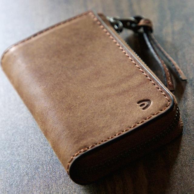 イタリアンレザーの表面に、サンドペーパーをかけ、真鍮ブラシで円を描くようにブラッシング加工を施した、手の込んだ革を使用したシリーズ。