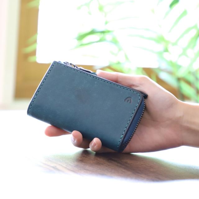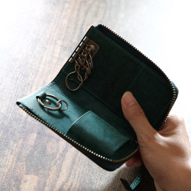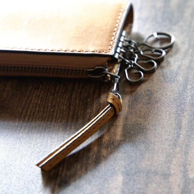 L字ファスナー式でファスナーには革の長い引手付で開閉しやすいデザインです。