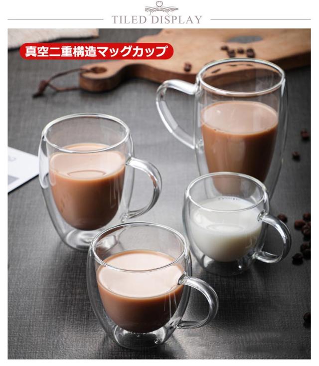 コップ 80ml マッグカップ カップ ダブルウォールグラス 取手付き 350ml 北欧 250ml 2個セット 450ml おしゃれ 150ml 耐熱 クリア 保温 保冷 二重構造 コーヒーカップ ティーカップ ビアグラス コーヒーグラス 軽量 洗いやすい お茶 透明