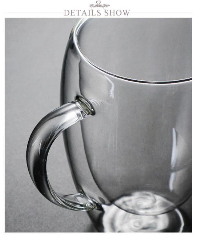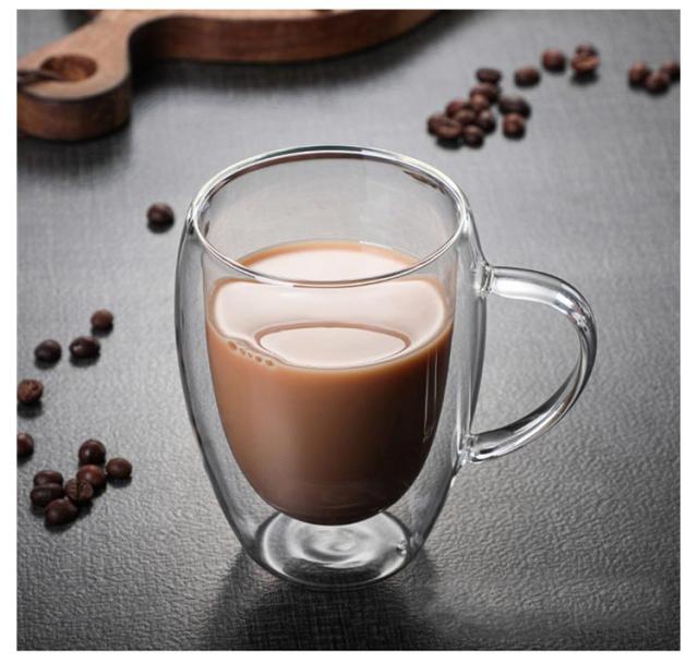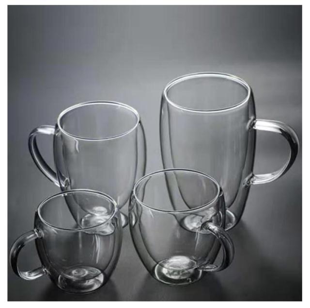 | 2個セット×2タイプ 80ml 150ml 250ml 350ml 450ml 真空二重構造マッグカップ 2重耐熱ガラスで作られているので熱いものは熱く、冷たいものは冷たく保つことが出来、どの季節どのシーンでも活躍します。 ハンドルつき、耐熱ガラス製マグのお洒落さはそのままに「持った時の熱さ」を解消しています。 お茶、コーヒー、ミルク、飲酒、飲料などホットでもアイスでもお楽しみ頂けます!家族と友達へのプレゼントにも特にお勧め! | |