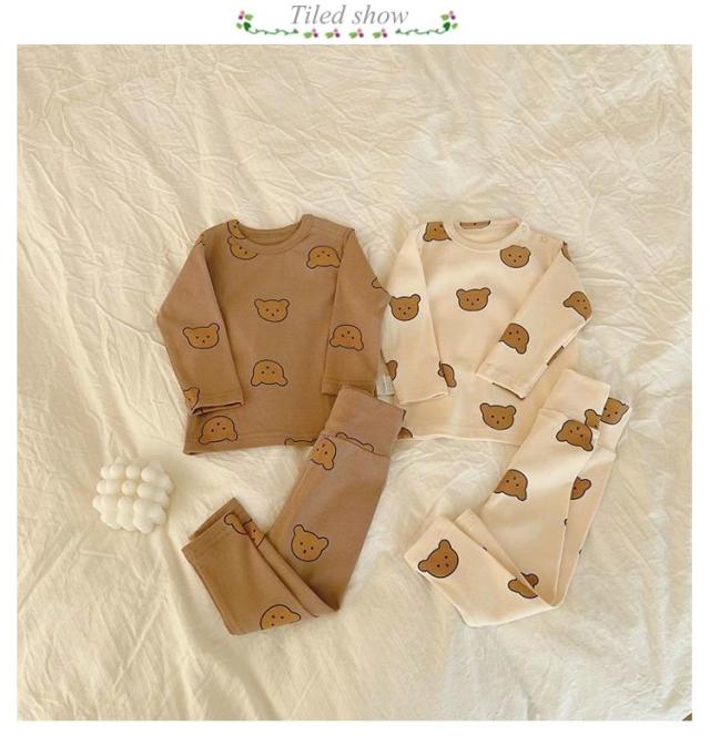 | 裏起毛有タイプ&裏起毛無しタイプ!春から冬にかけて大活躍!長袖ルームウェア。 可愛い熊柄デザインが揃っていて着替えも楽しい。 オシャレでかわいいデザインのトップス&腹巻き付きパンツ便利な2点セット! ウエスト部分はゴムになっていてお着替えもラクラク。 | |