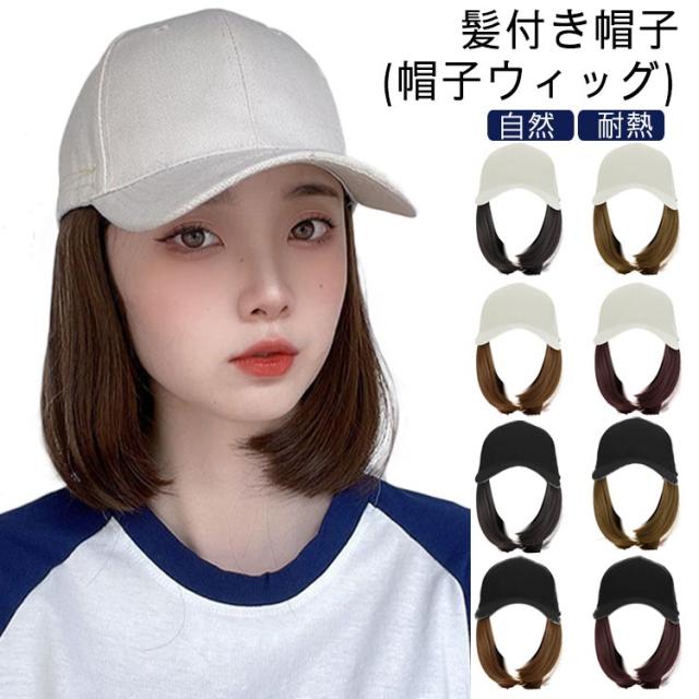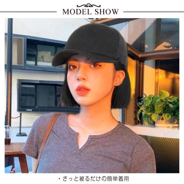 ウィッグ ストレート 髪付き帽子 帽子付きウィッグ ショット ボブ 帽子一体型 レディース 自然 耐熱 キャップウィッグ ウィッグ