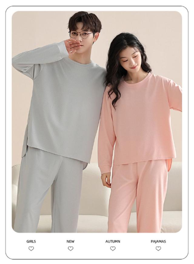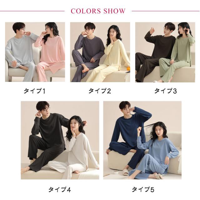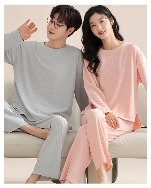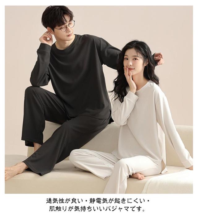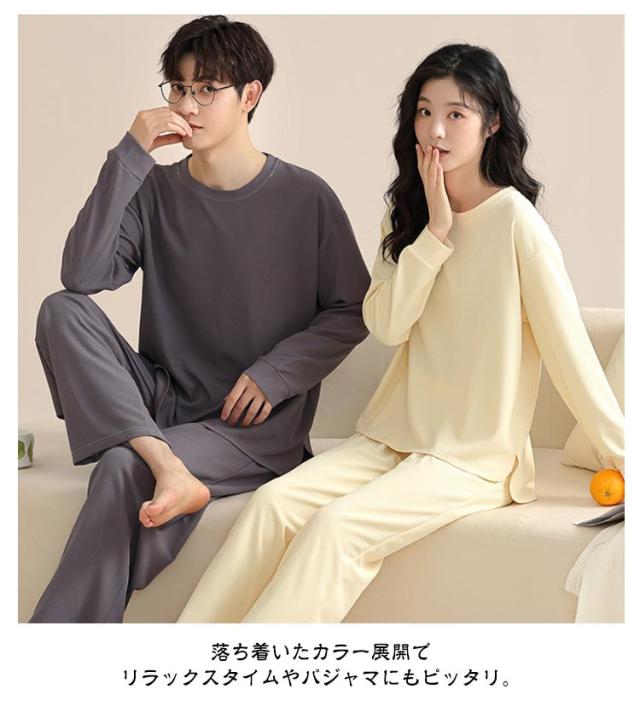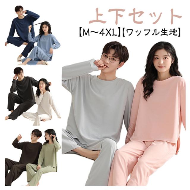 ナイトウェア 上下セット セットアップ レディース カップル 綿 ルームウエア 寝間着 ペア 寝巻き ワッフル生地 男性 パジャマ 無地 大人 ナイトウエア リラックスウェア 長袖 部屋着 女性 可愛い かわいい 秋 コットン 男女兼用 女性 メンズ