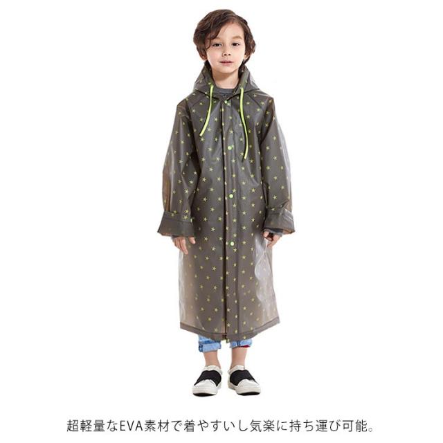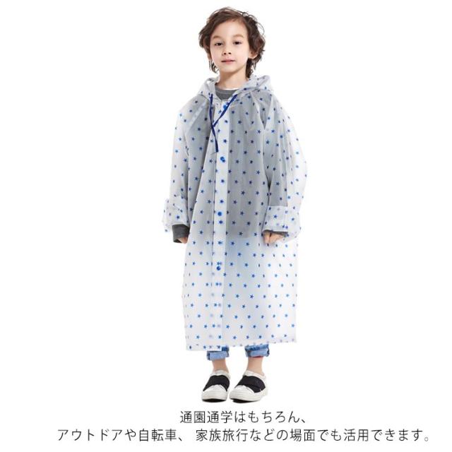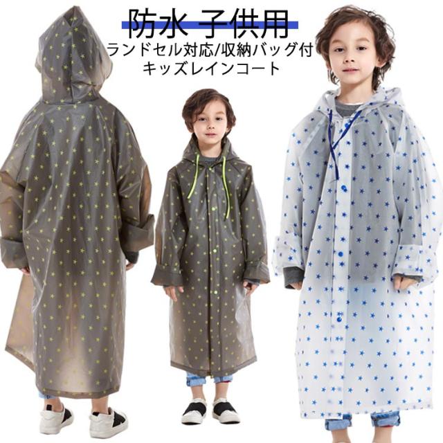 | ランドセル対応/収納バッグ付 キッズレインコート 背中のスナップをパチンと外すとランドセルのスペースが広がります。 超軽量なEVA素材で着やすいし気楽に持ち運び可能。 首の部分は紐付きで縛ると雨風の侵入を防げる。 フードの一部が透明で、雨風をカードできるし、 周りも見やすい設計。 収納ポーチ付きで保管や持ち運びに便利なレインコートと同じカラーの収納バッグ付き。使用後はコンパクトに収納でき、持ち運びも便利です。 鞄やランドセルを余裕で入れます。 通園通学はもちろん、アウトドアや自転車、 家族旅行などの場面でも活用できます。 | |