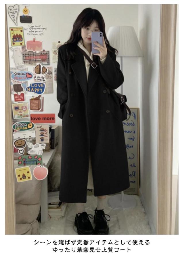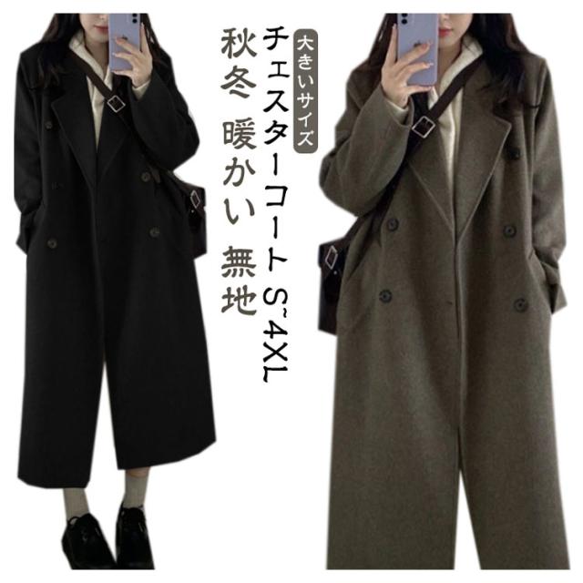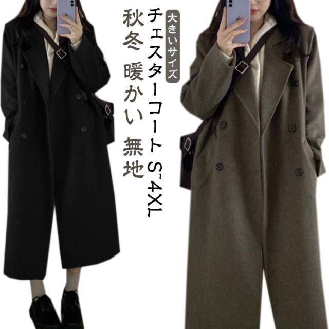 チェスターコート 秋冬 暖かい レディース ロング コート コート アウター カジュアル ファッション 無地 黒 大きいサイズ 30代 40代 きれいめ OL 通勤 オフィス ビジネス 秋 冬 あったか