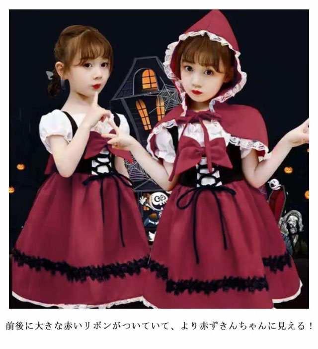 子供 演出服 赤ずきん ハロウィン コスプレ 衣装 仮装 キッズ 女の子 かわいい グリム 童話 変装 コスプレ衣装 赤ずきんちゃん コスチューム マント ワンピース セット クリスマス パーティー Cosplay 100 110 120 130 140 150 160 大きいサイズ 【送無】
