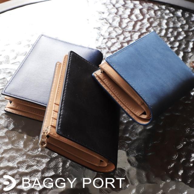 【商品レビュー記入で+5%】バギーポート 財布 メンズ 二つ折り BAGGY PORT KOI ZYS-096N 本革 小銭入れ 牛革 男性 紳士 ミドルウォレット サイフ ブランド ファスナー 革財布 藍染 インディゴ レザー プレゼント ギフト 化粧箱付