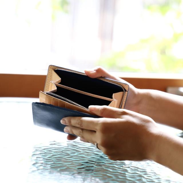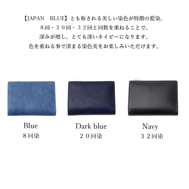 | サイズ | サイズ:W13.4×H10×D3cm 重さ:140g 素材:藍染牛革 |