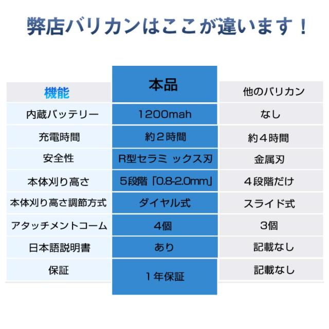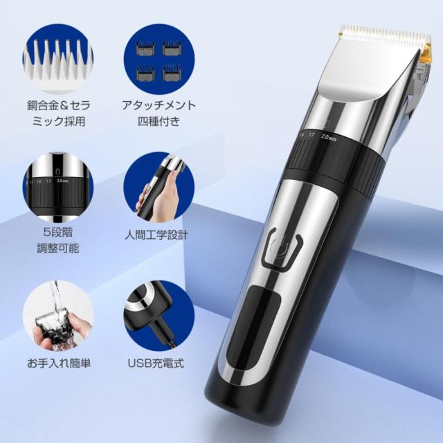 電動バリカン ヘアカッター アタッチメント コードレス 軽量 メンズ 水洗い 家庭 散髪 業務用 交流式 子供 セルフ USB充電 充電式 プレゼント