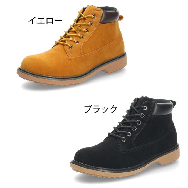ブーツ メンズ 防水 防滑 ハイカット サイドジップ 紐 レースアップ ブラック イエロー イエローブーツ 雨 雪 滑りにくい 軽量 歩きやすい 履きやすい