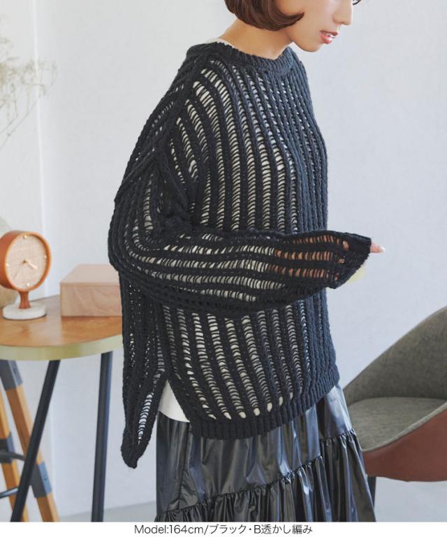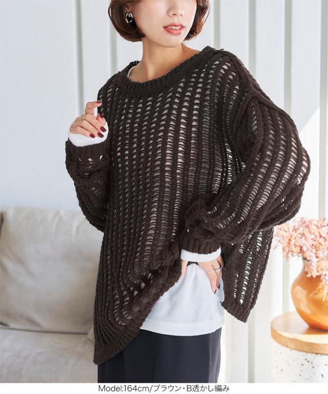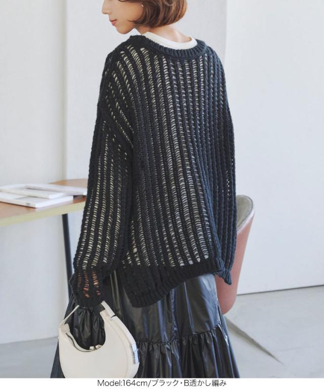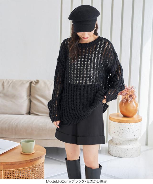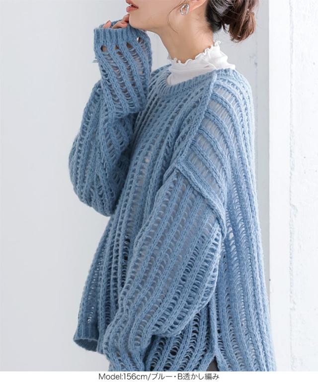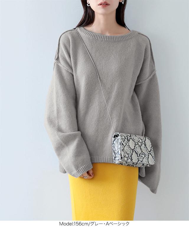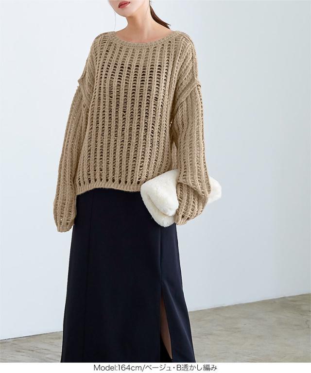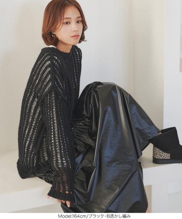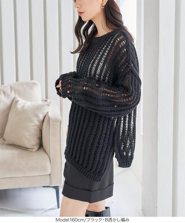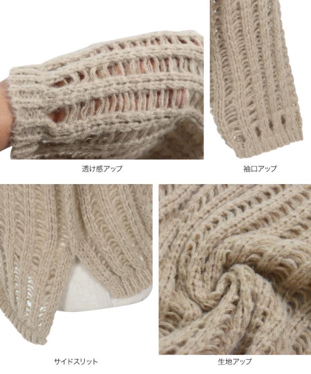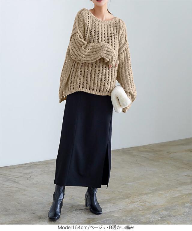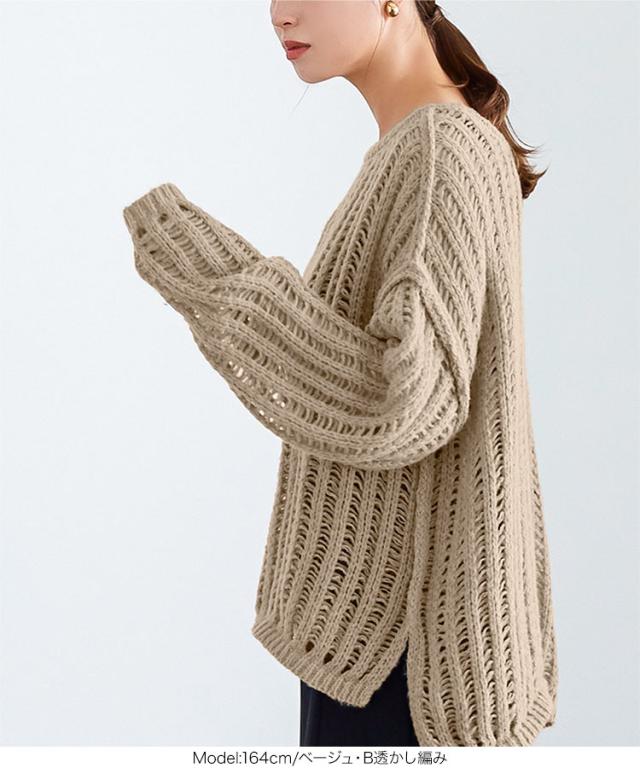 アシメデザインアウトリンキングスリットニットトップス C6420 入荷済レディース トップス ニット 透かし編み セーター 大人 ふわふわ サイドスリット 長袖 オーバーサイズ ゆったり ざっくり ベーシック シンプル20代 30代