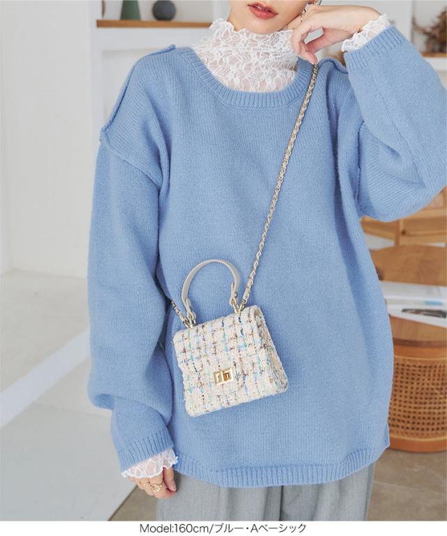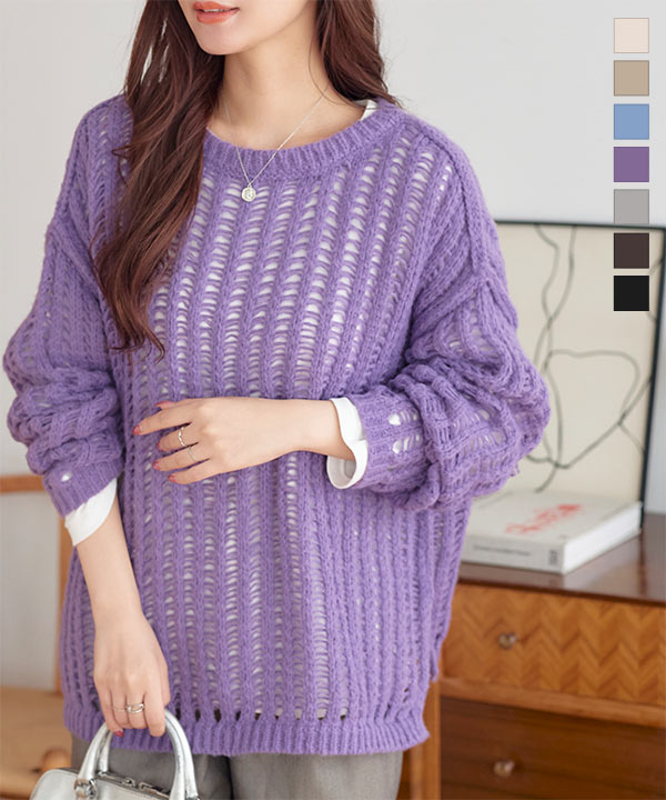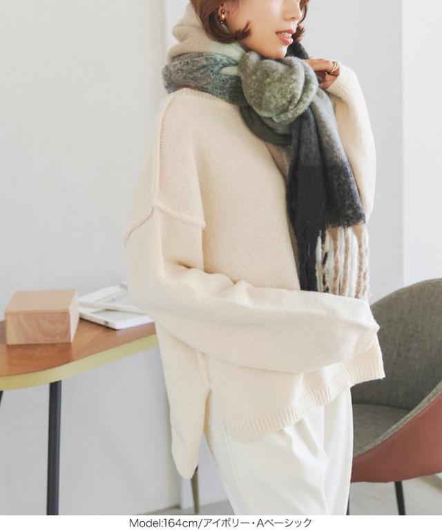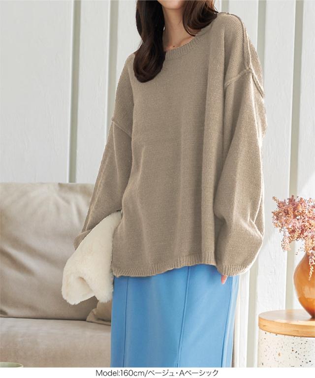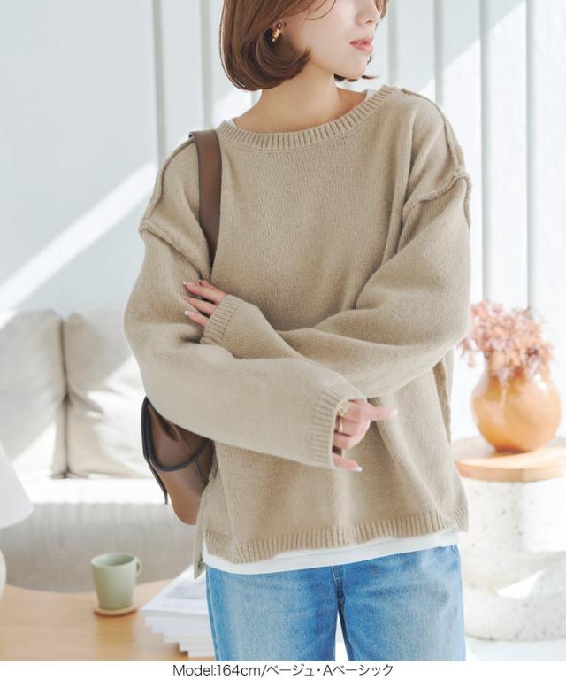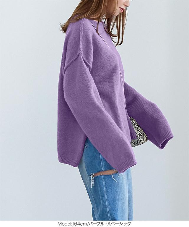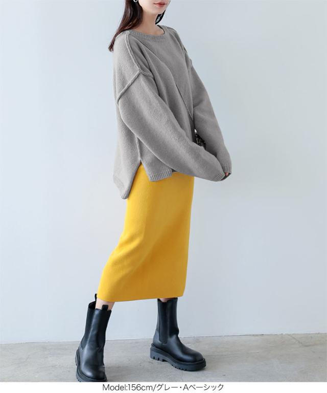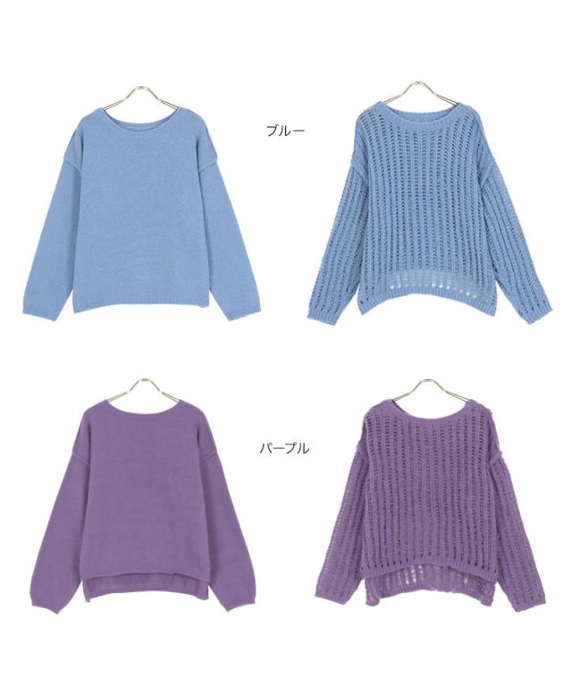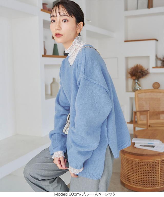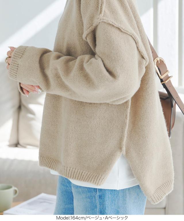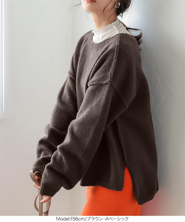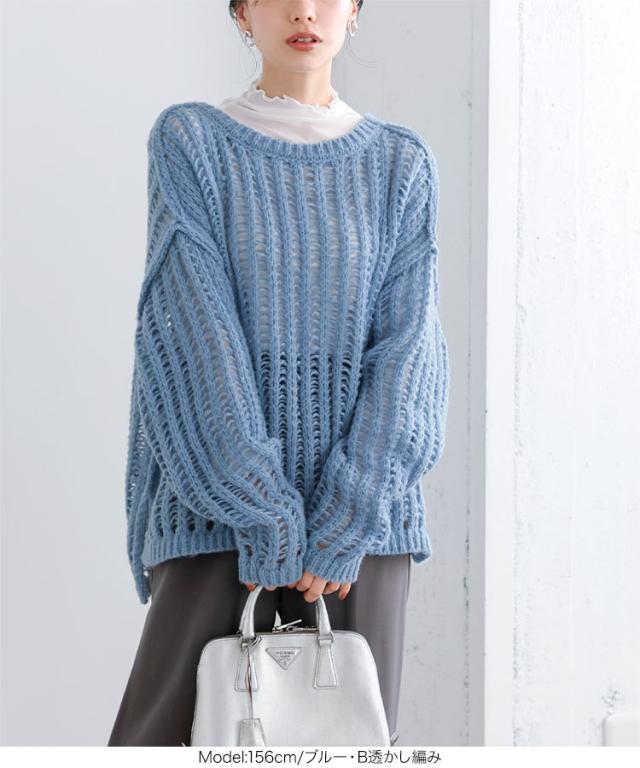 アシメデザインアウトリンキングスリットニットトップス C6420 入荷済レディース トップス ニット 透かし編み セーター 大人 ふわふわ サイドスリット 長袖 オーバーサイズ ゆったり ざっくり ベーシック シンプル20代 30代