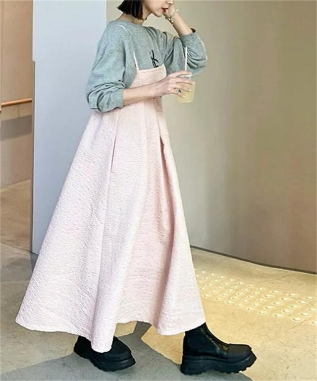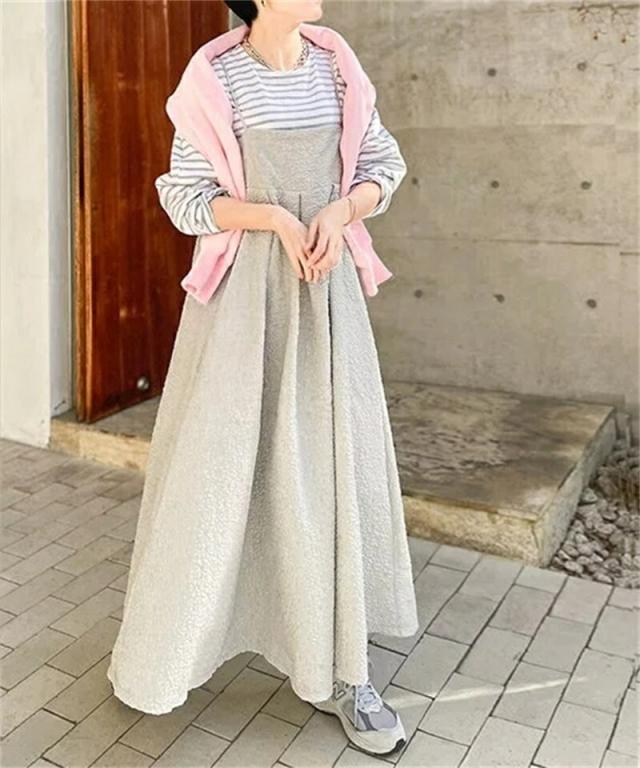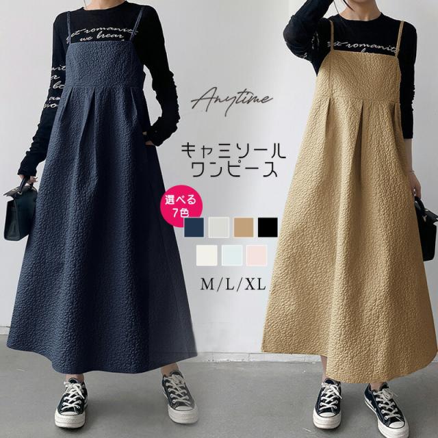 送料無料 キャミワンピース ジャガードワンピース ロング キャミソール ワンピース Aライン ロングワンピース レディース 体型カバー キャミワンピ ジャガード マキシ 無地 春 夏 秋 可愛い きれいめ カジュアル フェミニン ゆったり 秋コーデ