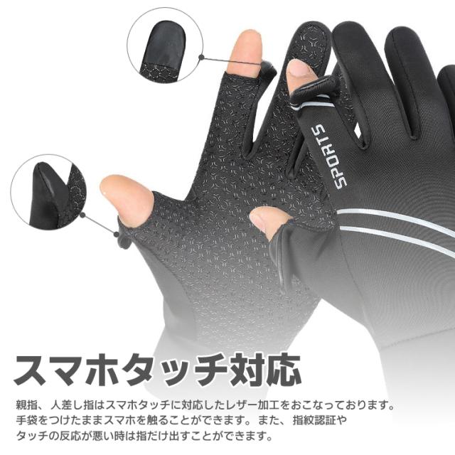 防寒グローブ 撥水素材 指出し キャップ式 閉開便利 半指 裏起毛 手掌部滑り止め スマホタッチ対応 自転車 通勤 通学 HEST032