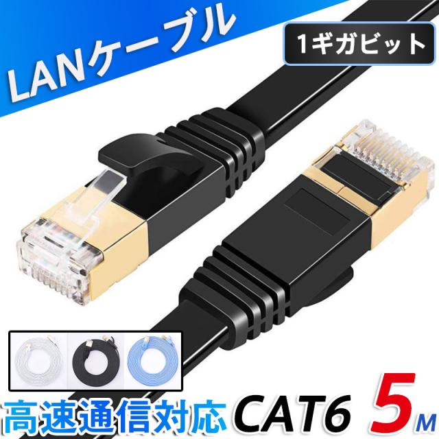 LANケーブル CAT6 5m 1ギガビット 高速通信対応 ツメ折れ防止 ランケーブル カテゴリー6 薄型 フラットケーブル 業務