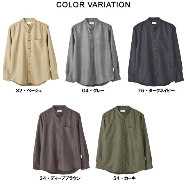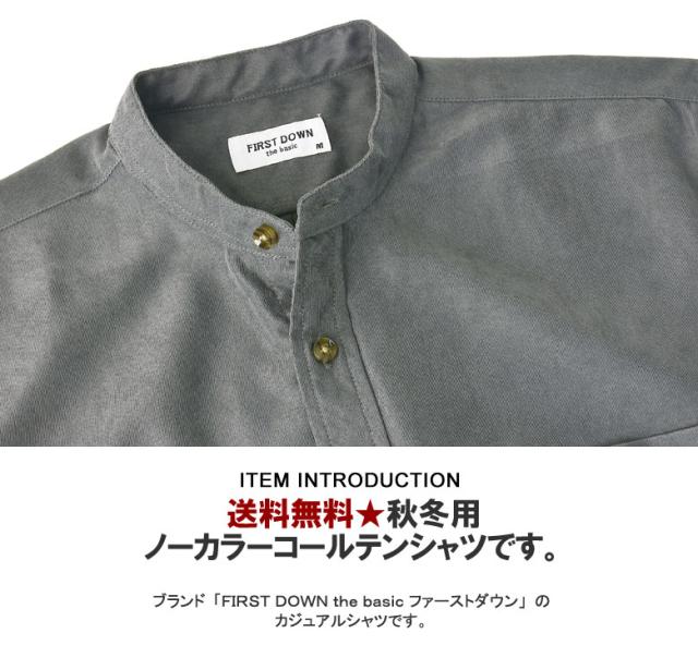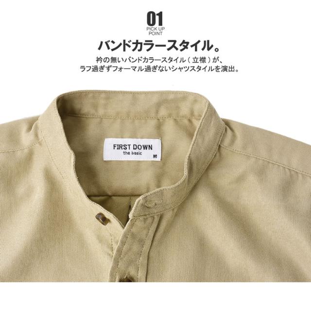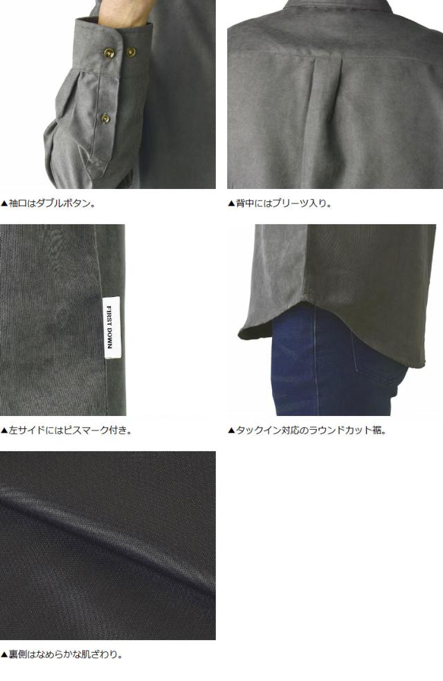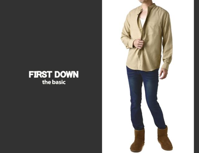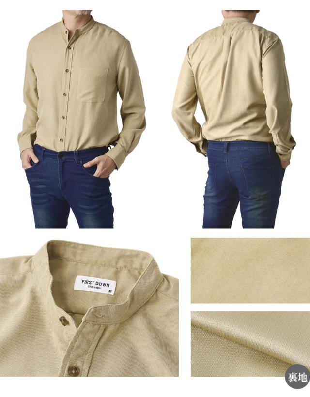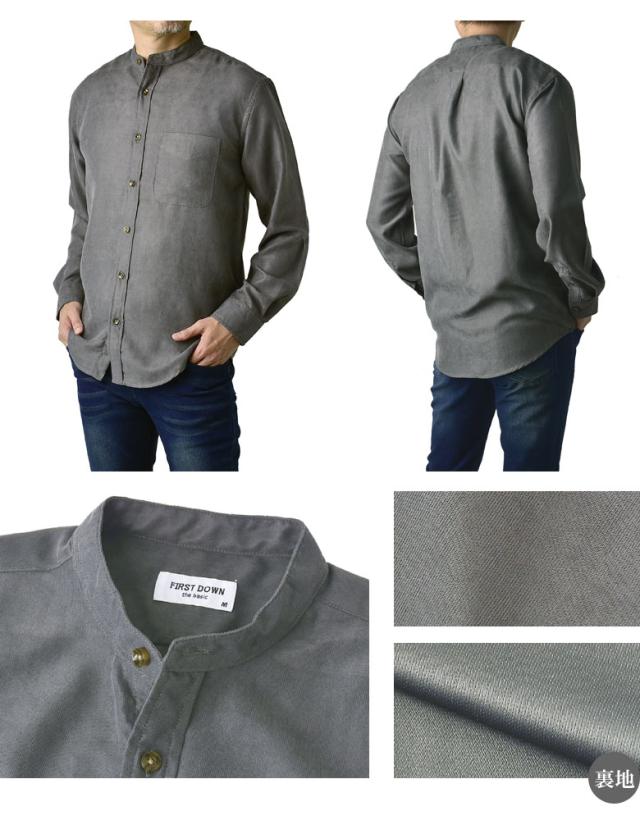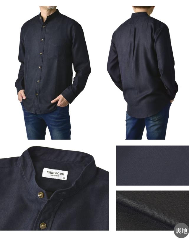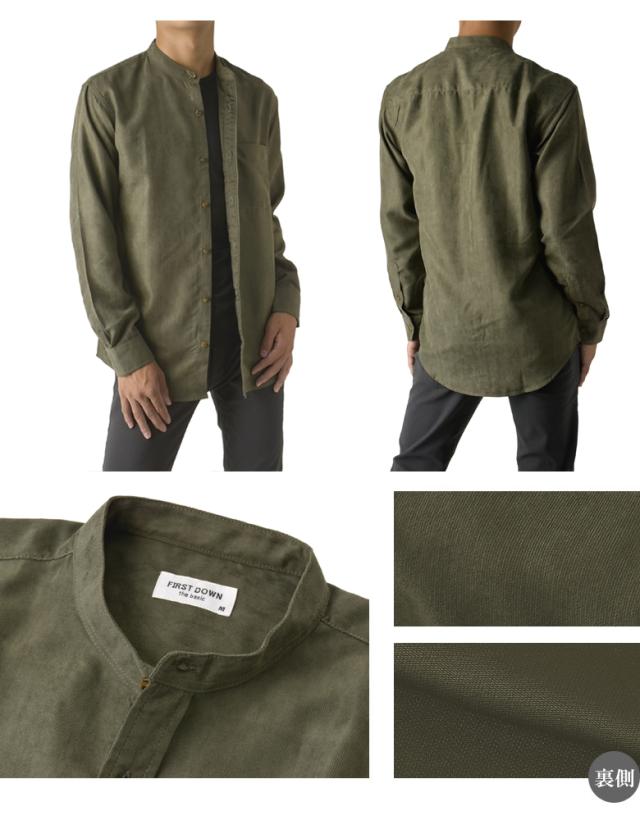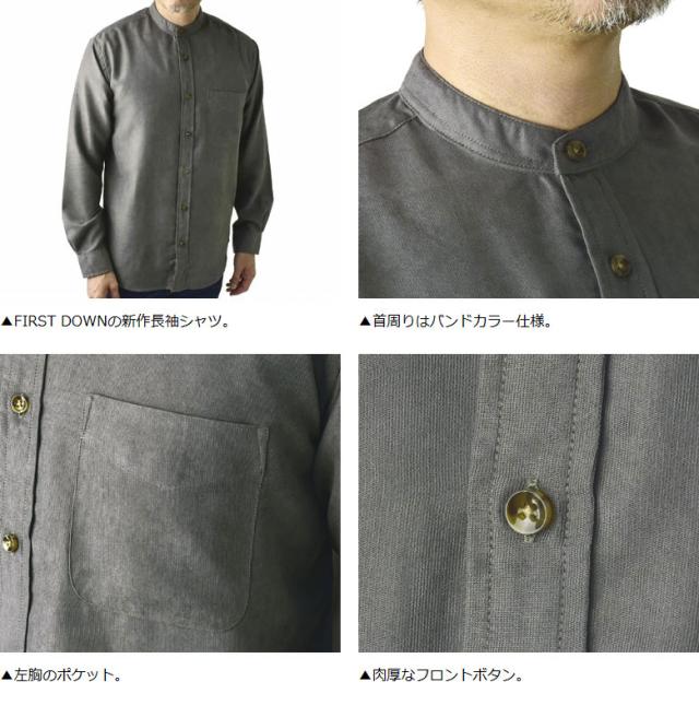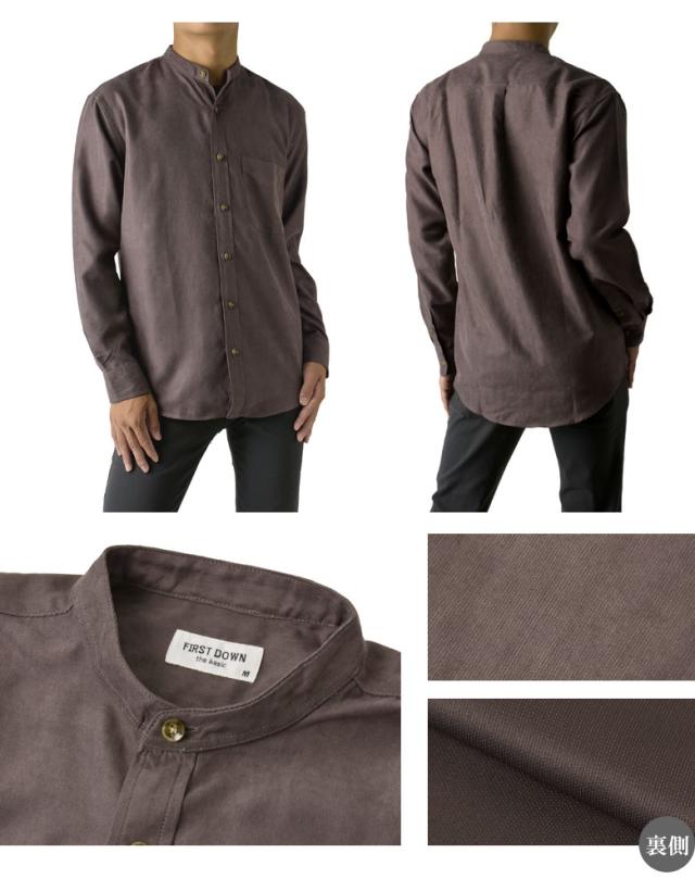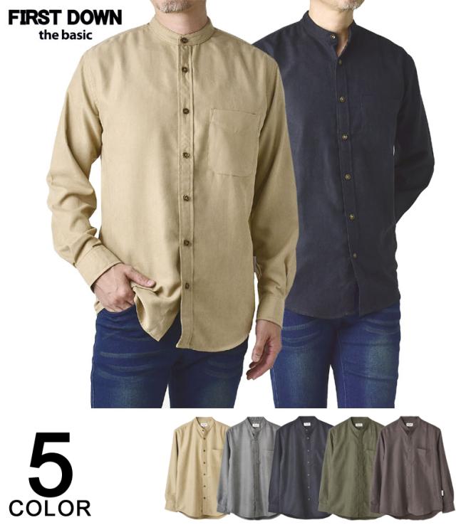 FIRSTDOWN ファーストダウン バンドカラーシャツ メンズ コーデュロイシャツ 長袖 衿無し ポリスエード シャツ【A4U】【パケ1】