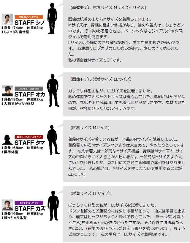 ■上記掲載画像のモデルは身長174cm・体重63kgでMサイズを着用しております。
