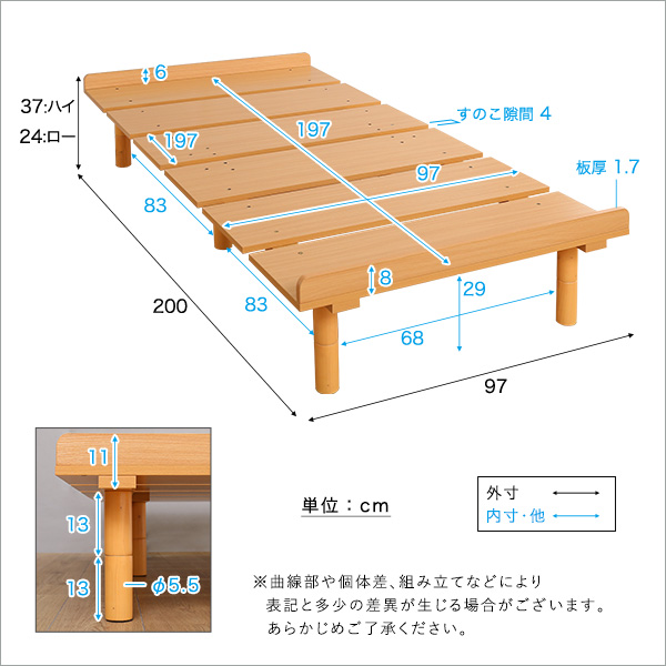 約幅97×長さ200×高さ37cm(ハイ)・24cm(ロー)
