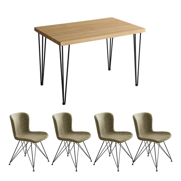 ファブリックダイニングチェア4脚と110cm幅ヴィンテージテーブルの5点セット!