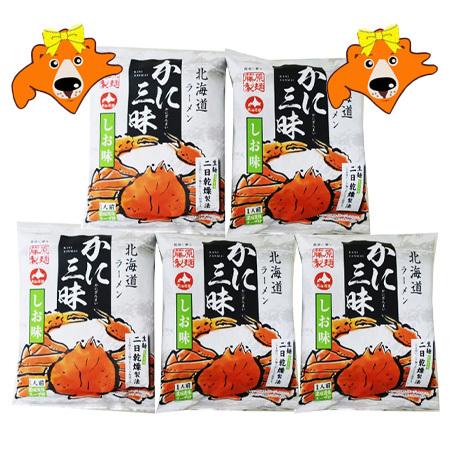 かにラーメン かに三昧 塩ラーメン インスタント 袋麺 カニ風味 ラーメン しおラーメン 乾麺 1袋×5袋 カニ / 蟹 / かに ラーメン 麺類 ラーメン 魚介類 水産加工品 カニ