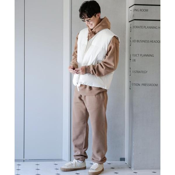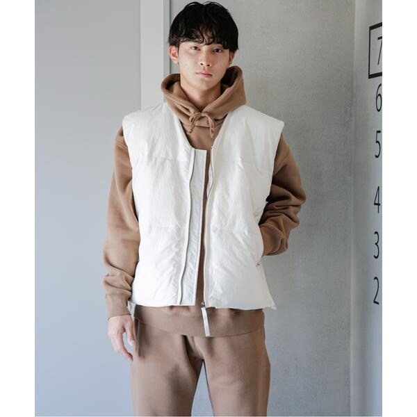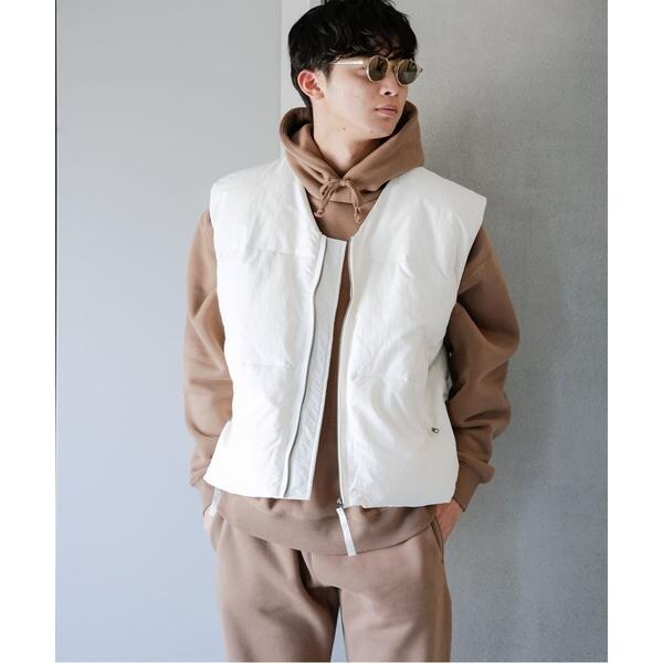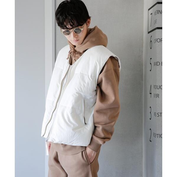 オーバーサイズシルエットの中綿ベスト。