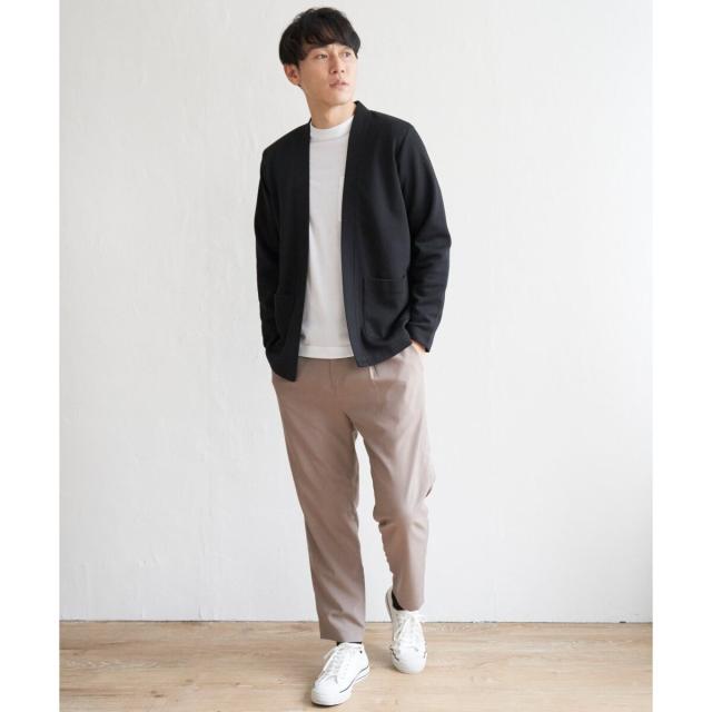 ボタンレスのすっきりとしたカーディガンに、無地ロンTのインナーが付いた2点セット。