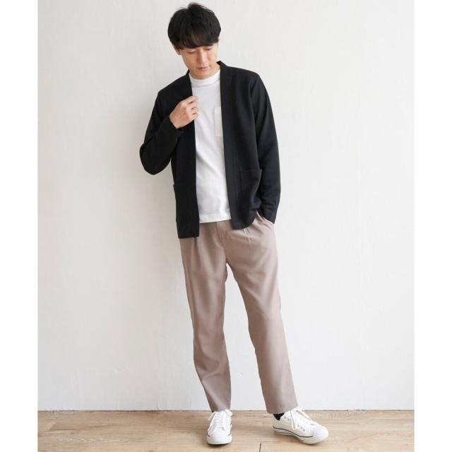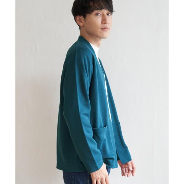 カーディガンはしっかりめのダンボールニット素材。