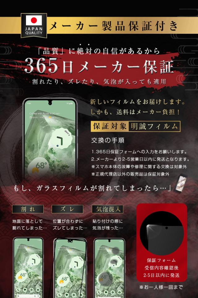 - 何度目かの購入です。 家族3人色違いで同じスマホを使っているので、何枚あっても困りません。 落としたら当たりどころが悪いと欠けたり亀裂が入りますが、本体の画面は傷つかないので必須の商品です。 保証があるようですが、使ったことはありません。他のレビューにもありましたが、面倒なようです。 ガイド枠なんてものは付いてきませんが、貼り付けも簡単で動作も不便はありません。