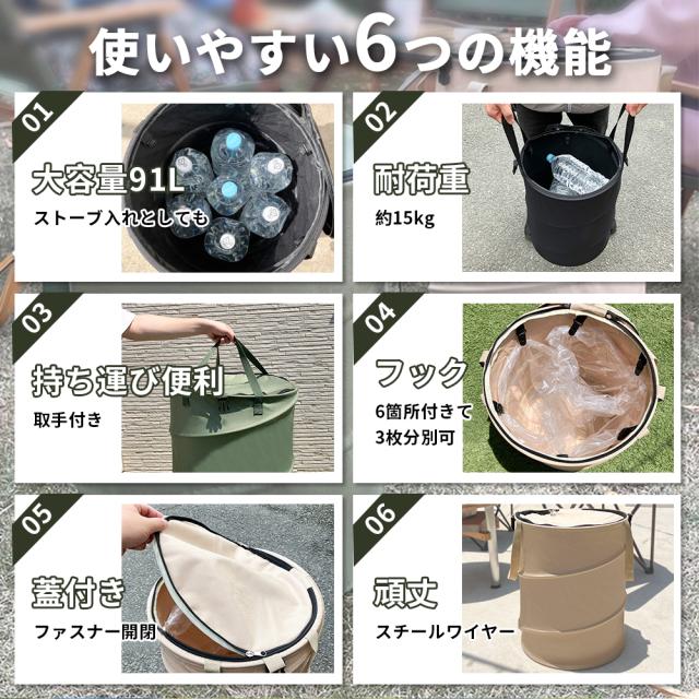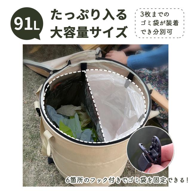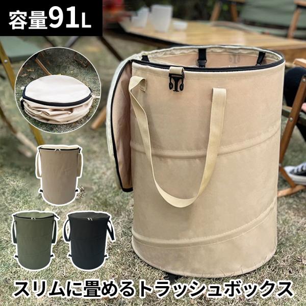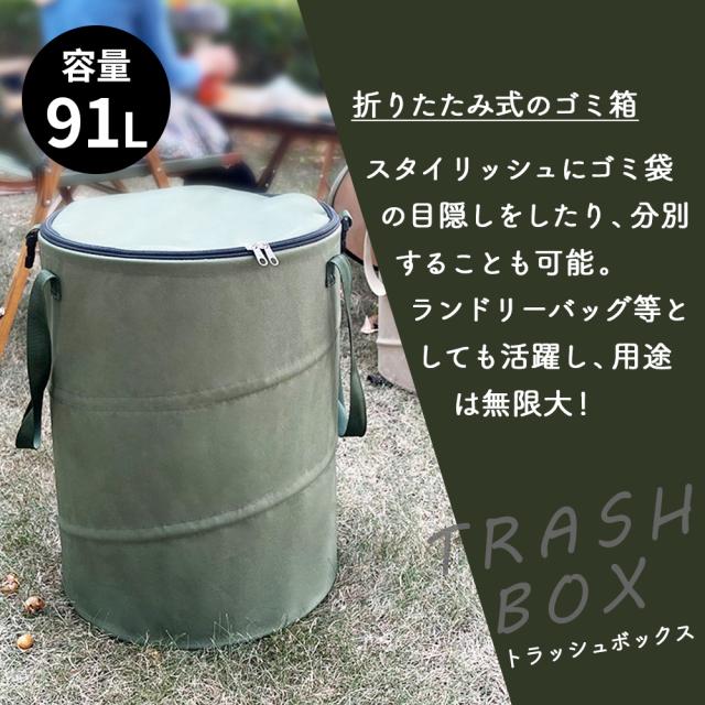 トラッシュボックス ゴミ箱 91L キャンプ アウトドア ゴミ箱 折りたたみ 大容量 コンパクト 持ち運び ダストボックス 収納 軽量 フタ付き ブラック