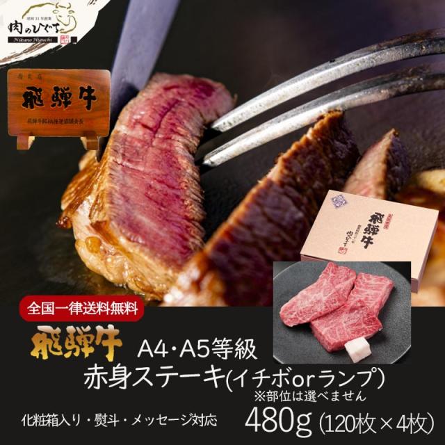 【年内出荷可能】 飛騨牛 赤身ステーキ イチボ or ランプ 480g(120g×4枚)肉 ギフト 牛肉 ステーキ お肉 ぽっきり 和牛 プレゼント 化粧箱入 黒毛和牛 御祝 御礼 のし可 お取り寄せ お取り寄せグルメ 内祝 食べ物 いちぼ らんぷ 赤身