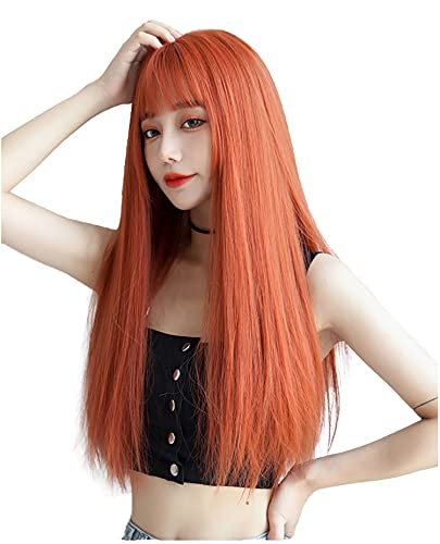 ウィッグ ロング ストレート かつら フルウィッグ 自然 コスプレ ぱっつん 小顔 耐熱 wig 原宿系 ファッション ネット/櫛付き オレン