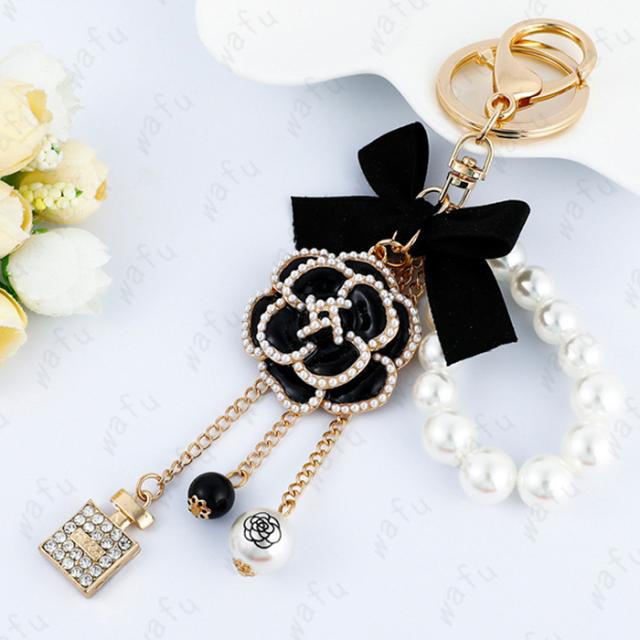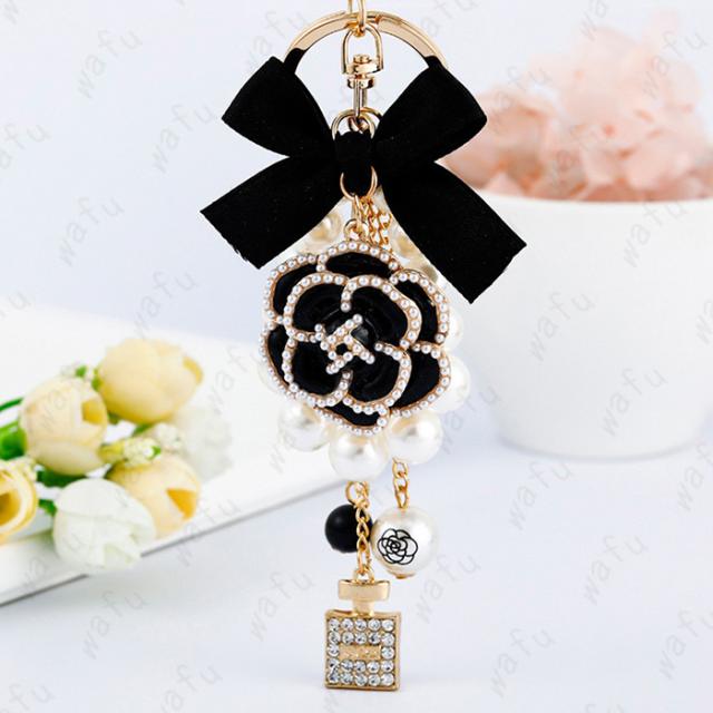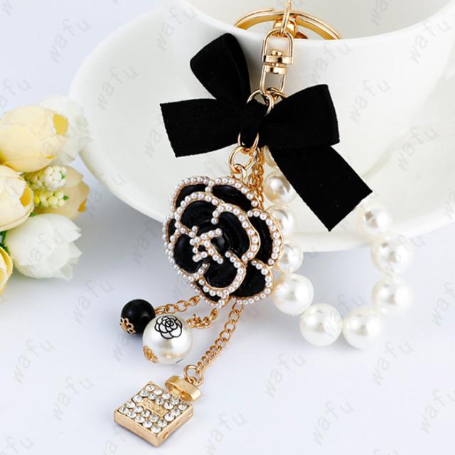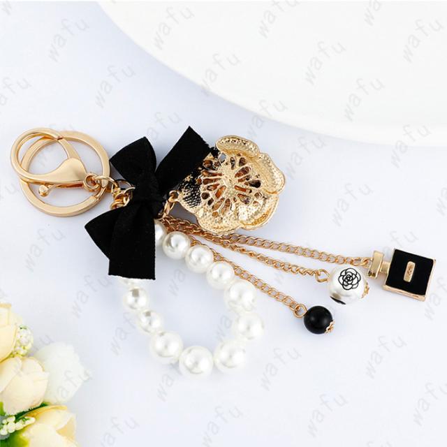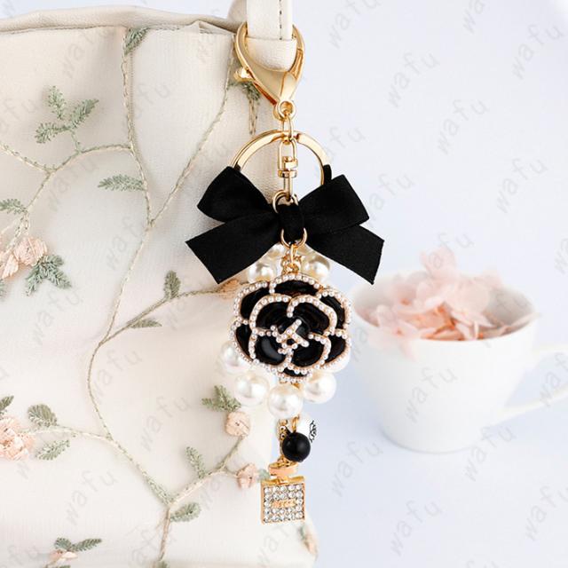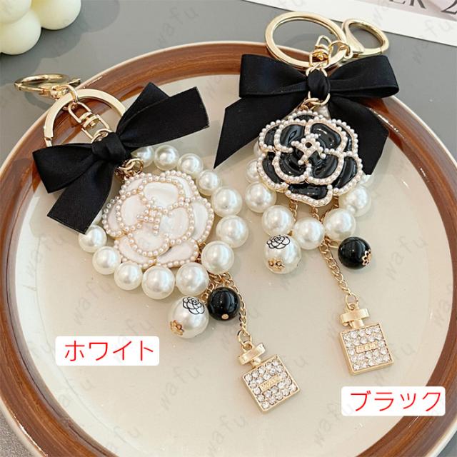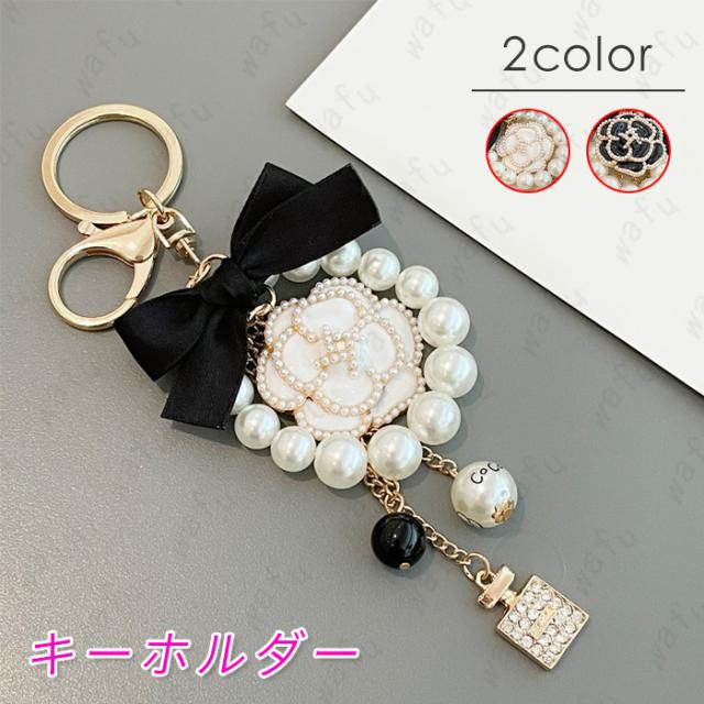 キーリング レディース (#z70)日本国内当日発送 2color キーチェーン キラキラ パール バッグチャーム リボン付き オシャレ 大人