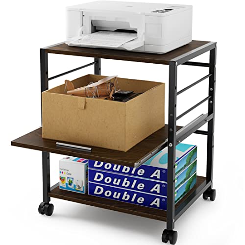 プリンター台 キャスター付き プリンターワゴン プリンターラック 木製 3段 デスクワゴン 机下収納 プリンターカート プリンター収納 サイドワ