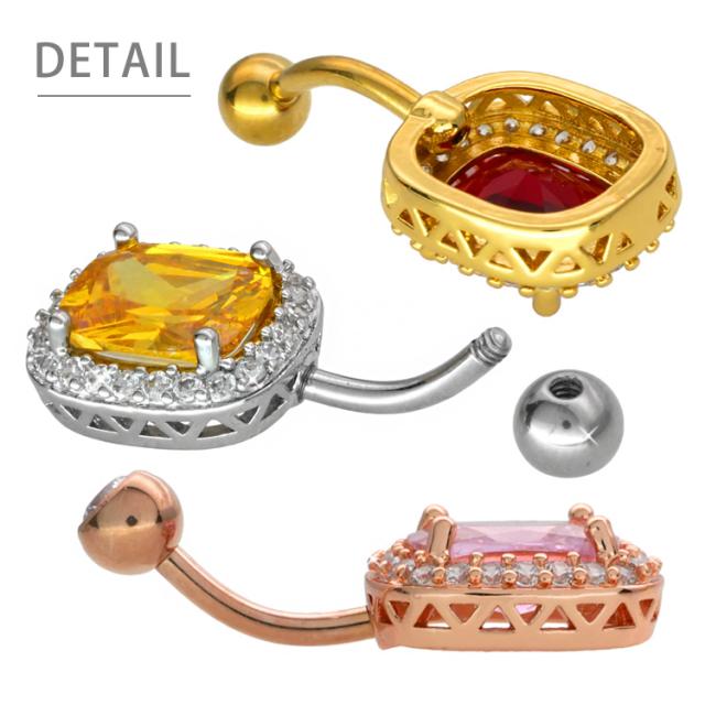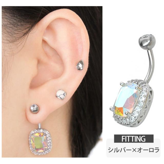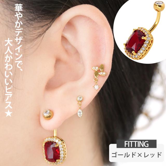 大きなオーバルジュエルをかこむように配置した小粒ジュエルがキラキラ輝く、まるでお姫様のようなとってもゴージャスなピアスです。 へそピアスにはもちろん、耳の軟骨ピアスでも活躍するアクセサリーです。ピアスの材質には、金属アレルギーにも安心の医療用素材”316Lサージカルステンレス”を採用しています。モチーフは真鍮ですが、アレルギーの出にくいPVDコーティングなので金属アレルギーの方もお使いいただけます。太さのサイズは一般的なへそピアスに使用される14Gサイズです。