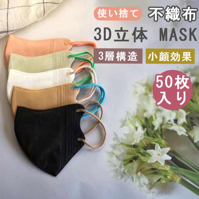 【2点目半額】マスク 立体 50枚 血色 不織布マスク 使い捨てマスク 不織布カラーマスク 立体マスク 3Dマスク 3層 成人 大人用マスク