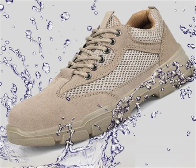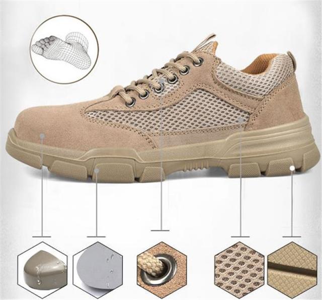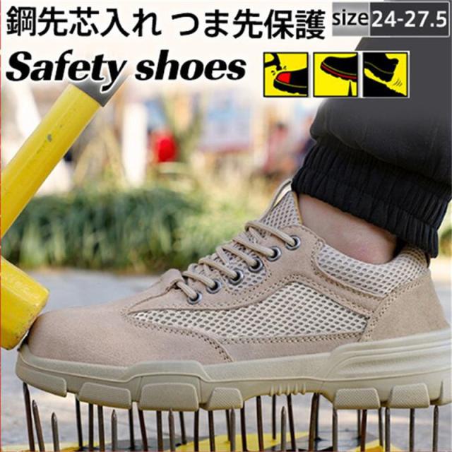 安全靴 スニーカー メンズ 鋼先芯入れ つま先保護 メッシュ セーフティー 耐摩耗 低反発 防臭 カーキ 軽量 作業靴 通気性 コンフォート 現場 夏