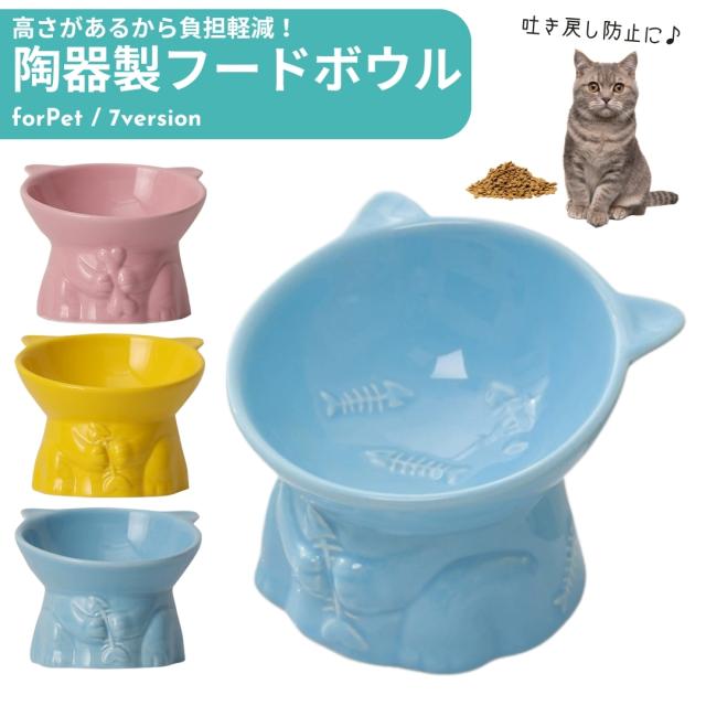 フードボウル ペットボウル 食器 陶器 エサ入れ 餌入れ 猫 ネコ 犬 イヌ ペット用品 ペットグッズ サカナ 柄 無地 単色