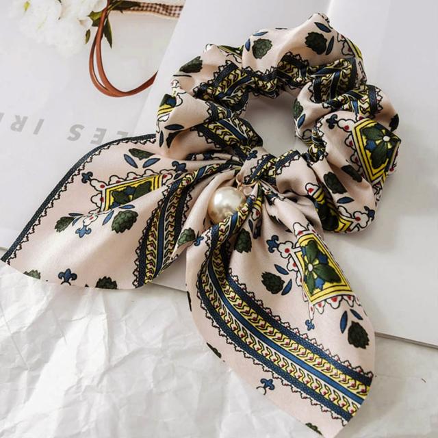 大きくたれたカラフルな蝶結びリボンがとってもキュートなシュシュです