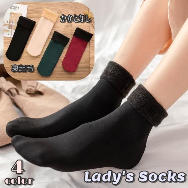 クルーソックス 靴下 くつ下 踵なし かかとなし 女性 レディース 裏起毛 厚手 防寒 保温 暖かい 秋冬 無地 シンプル お洒