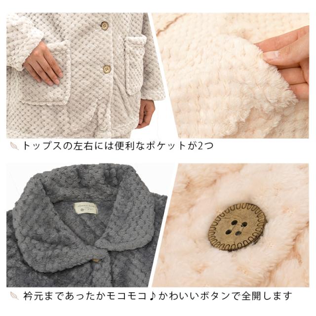 【クリスマス ギフト無料】【11/6〜600円値下!】パジャマ レディース マイクロワッフル ふわもこ 起毛 木製ボタン マイクロファイバー ウエストゴム入 暖かい ギフト