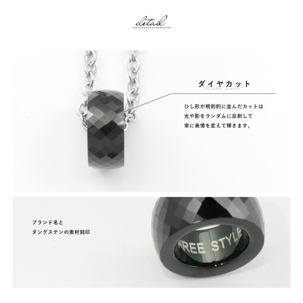 ネックレス ペンダント タングステン サージカルステンレス 医療用ステンレス 316L 金属アレルギー アレルギーフリー ダイヤの次に硬い金属 ミラーボールカット リング ブラック Free style 丈夫 レアメタル