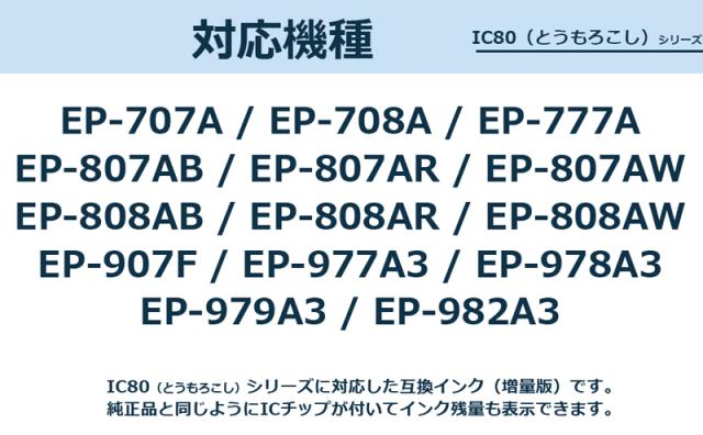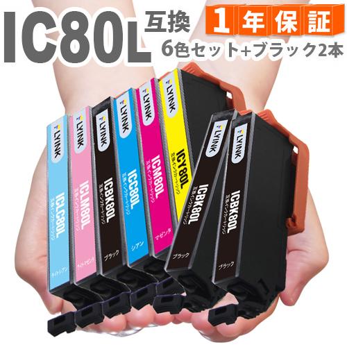 IC80 IC6CL80L 6色セット+黒2本 ICBK80L エプソン プリンターインク ic80l epson 互換インクカートリッジ EP-979A3 EP-808A EP-707A EP-708A EP-807A
