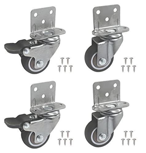 L型 キャスター 4個セット L型プレート ブレーキ付き 1.25インチ 耐荷重 68kg 自在車 キャスター ネジ付き 静音 360度回転 ゴ