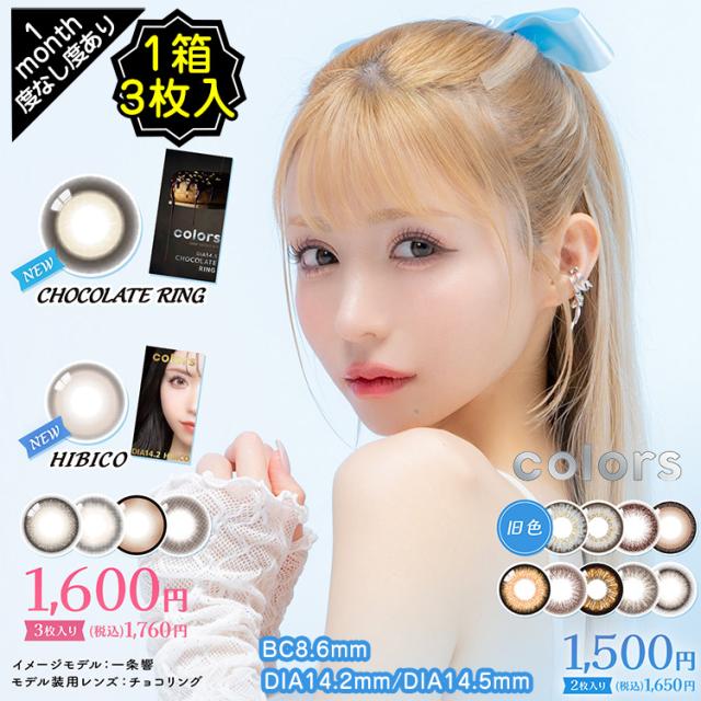 カラコン 1ヶ月 度あり 度なし カラーズ 一条響 マンスリー colors UVカット 1箱3枚入り DIA14.5mm DIA14.2mm BC8.6 BC8.7 ブラウン 高度数 ハイパワー コスプレ 発色 ナチュ盛り 大人可愛い フチあり 激安