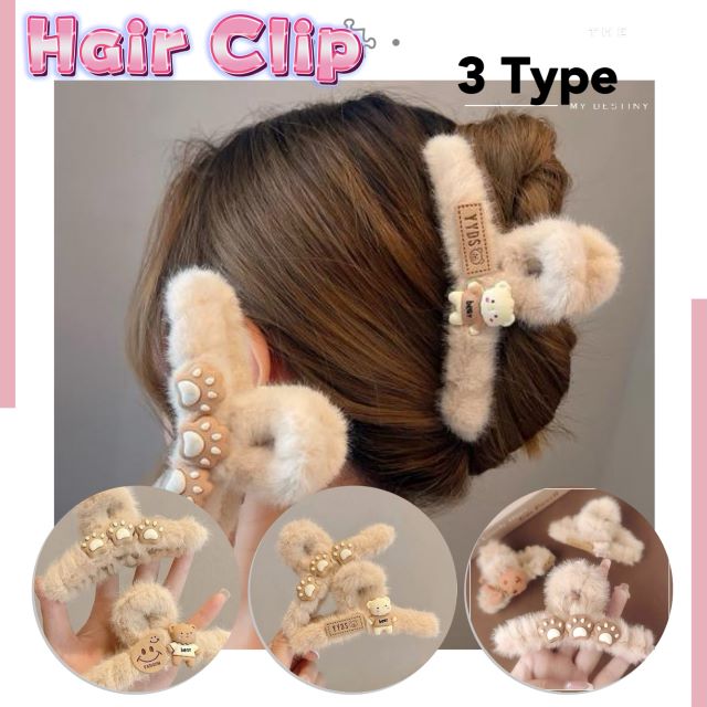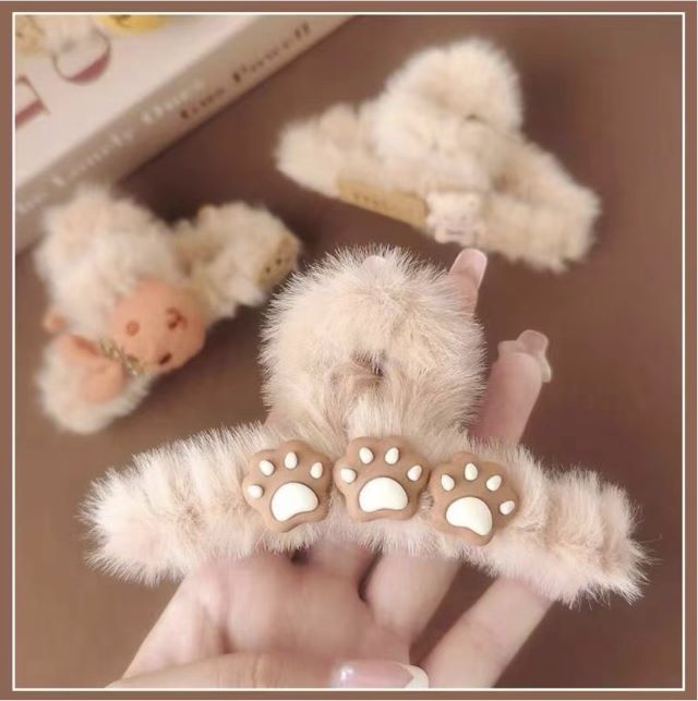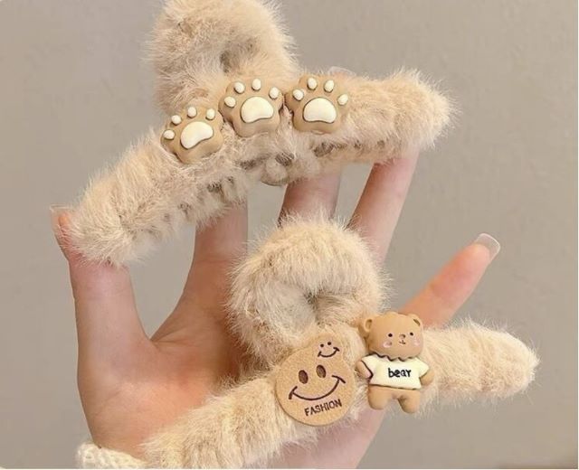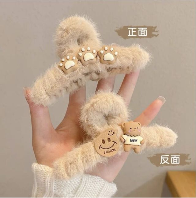 ※もこもこかわいいがアクセントのクマちゃんのヘアクリップ、ふわっとした触り心地 、シーズンを問わない、もこもこボア仕様が加えられた。