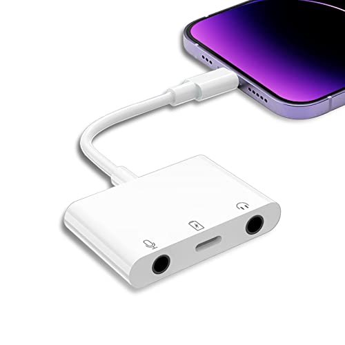 生放送用iPhone/iPadに適用 イヤホン 変換アダプタ 充電 同時 三股接続ケーブル 3.5mmジャック接続 外付けマイク 音楽調節 通話
